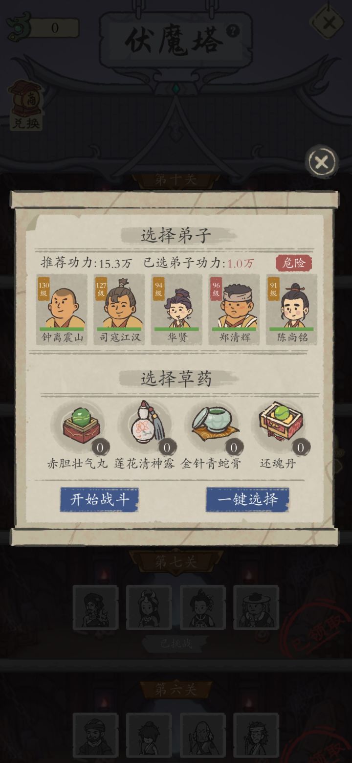 伏魔塔选择弟子点上就强退,退了就所有重新开始,太浪费时间了,我这才刚开始玩,