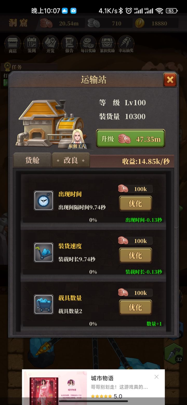 这游戏工厂运输站bug有人注意到吗?10点6分的时候,我的出现时间和载货速度没有改造,改造要20k,然后我进行改造,改造到需要100k,这时候10点7分,然后我退出游戏,等10点8分的时候我进入游戏,钱没有变,还是改造后的数目,但是工厂运输站还是没改造前的配置,这不就是白白吞钱吗?游戏制作者是没发现这个问题?还是说要通过这种方法让玩家白亏钱,然后通过刷视频赚钱?这是我的猜测,不过没有这个bug的话