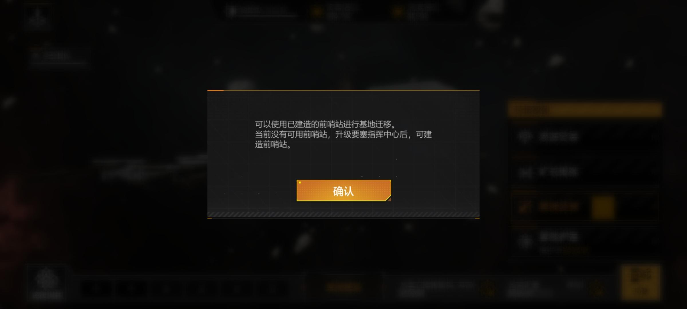 前哨站点建好了,迁移基地时说我没有前哨站点可用。大佬们,求解。~已经知道原因,原来还要建设3小时。感谢大佬们解答。
