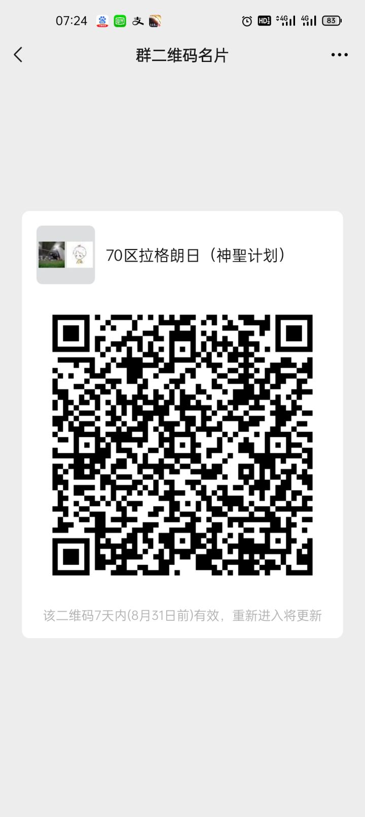 70区联盟:神聖计划成员加群,微信群二维码进群后第一件事改游戏名字,方便分辨谢谢!