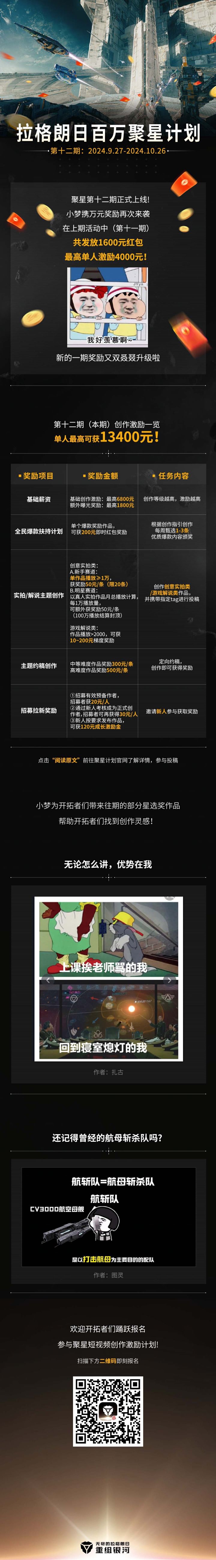 #无尽的拉格朗日 #拉格朗日百万聚星计划 第十二期正式上线!投稿即有机会拿高额奖金!成为银河顶流,书写传奇!即刻报名,走向巅峰→→→https://lglr.163.com/bwjx/