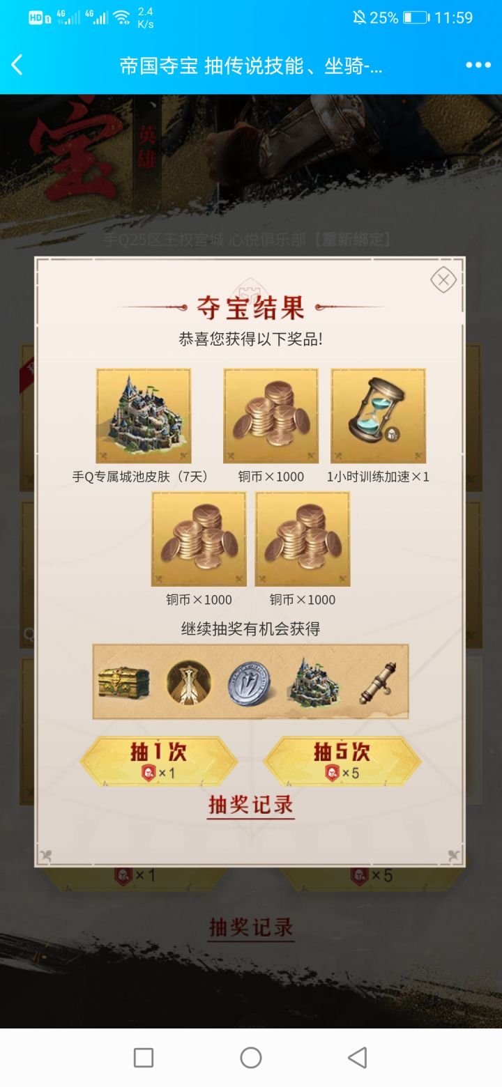 前天那个QQ活动,抽奖的又出来了,但是这次增加了宝石付款(游戏内那个黄色的宝石)然后他还加了许多新的规则,反正简而言之就是随时给你回档,只要你有问题,然后大家都去抽了抽试试,精彩,爆率全改了,还有群里好几个盟友的,5发四个铜币比比皆是,大家别碰了,恶心人
