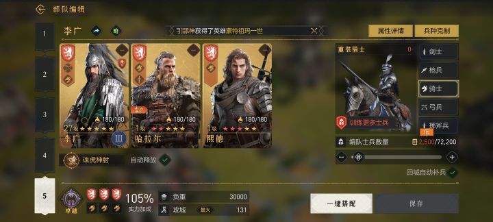 我想玩弓、剑、枪、骑阵容,但又不知该从何下手,怎么办?不用担心,伐伐已经给各位领主准备了四个兵种的获取难度较低的成型攻略,助力各位领主大人都能玩上自己喜欢的阵容,话不多说,我们先来看弓兵阵容吧~在冷兵器时代,弓箭是最可怕的致命武器,成千上万的弓兵一次齐射,能对数十丈外的敌军进行无差别攻击。在重返帝国的战场中,弓兵同样是输出最高的存在,选择中式风格还可开启特色弓兵诸葛连弩。魏兰+康斯坦丁+安德