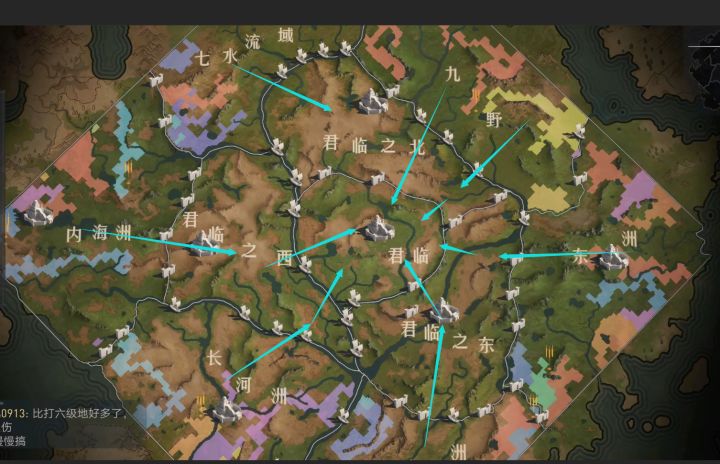 【兵临君临】如果大家不明白形式的话在下给大家简单讲解一下出生有六个州,我们在此发育,整合然后进入内部三州去抢最后的目标——君临