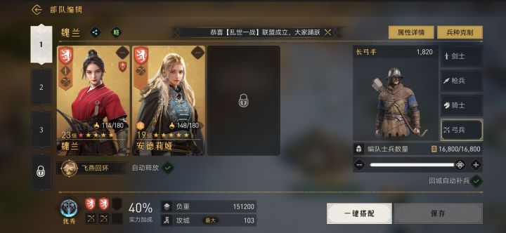 中式城堡里面3级精英兵诸葛连弩怎么感觉跟闹着玩一样,一点优势没有,感觉菜的不行,不知道后期怎么样,但是我现在五万诸葛连弩感觉体验一般,还不如之前普通弓兵用的舒服