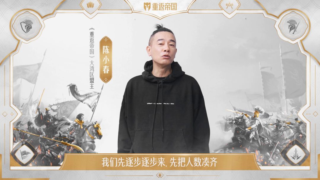 嘿嘿,伐伐我回来啦~大家有没有猜到帝国尝鲜体验官是谁呀?这次伐伐不卖关子了他就是!大湾区哥哥中的人气C位越来越温柔的宠妻狂魔唱跳演俱佳的全能艺人——陈小春!这次陈小春来到帝国当盟主可谓轻车熟路~根据这么多年的征战经验大湾区盟主陈小春也谈了谈《重返帝国》的策略敲黑板:人数凑齐,队伍做强做大,一起结盟传下去,大湾区盟主陈小春带兄弟来打我们了(画外音:伐伐鸡腿-1-1-1)究