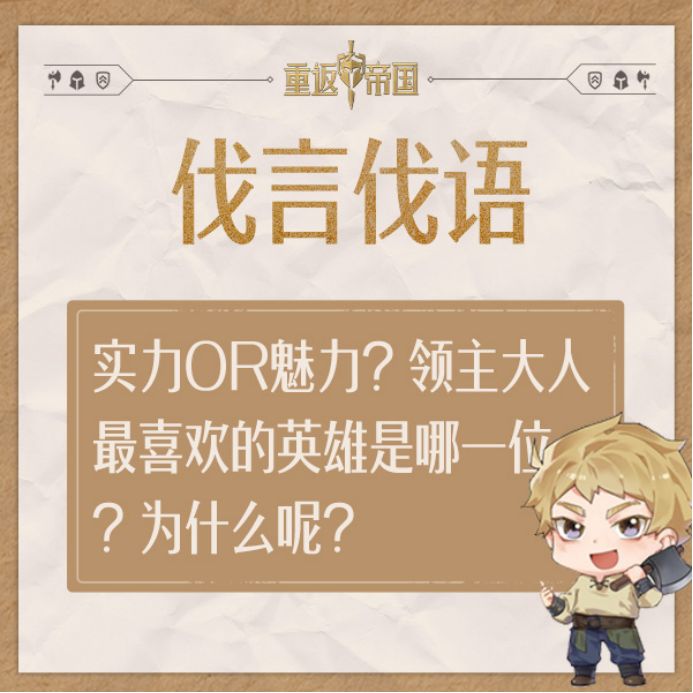每日活动丨实力or魅力?领主大人最喜欢的英雄是哪一位?为什么呢?