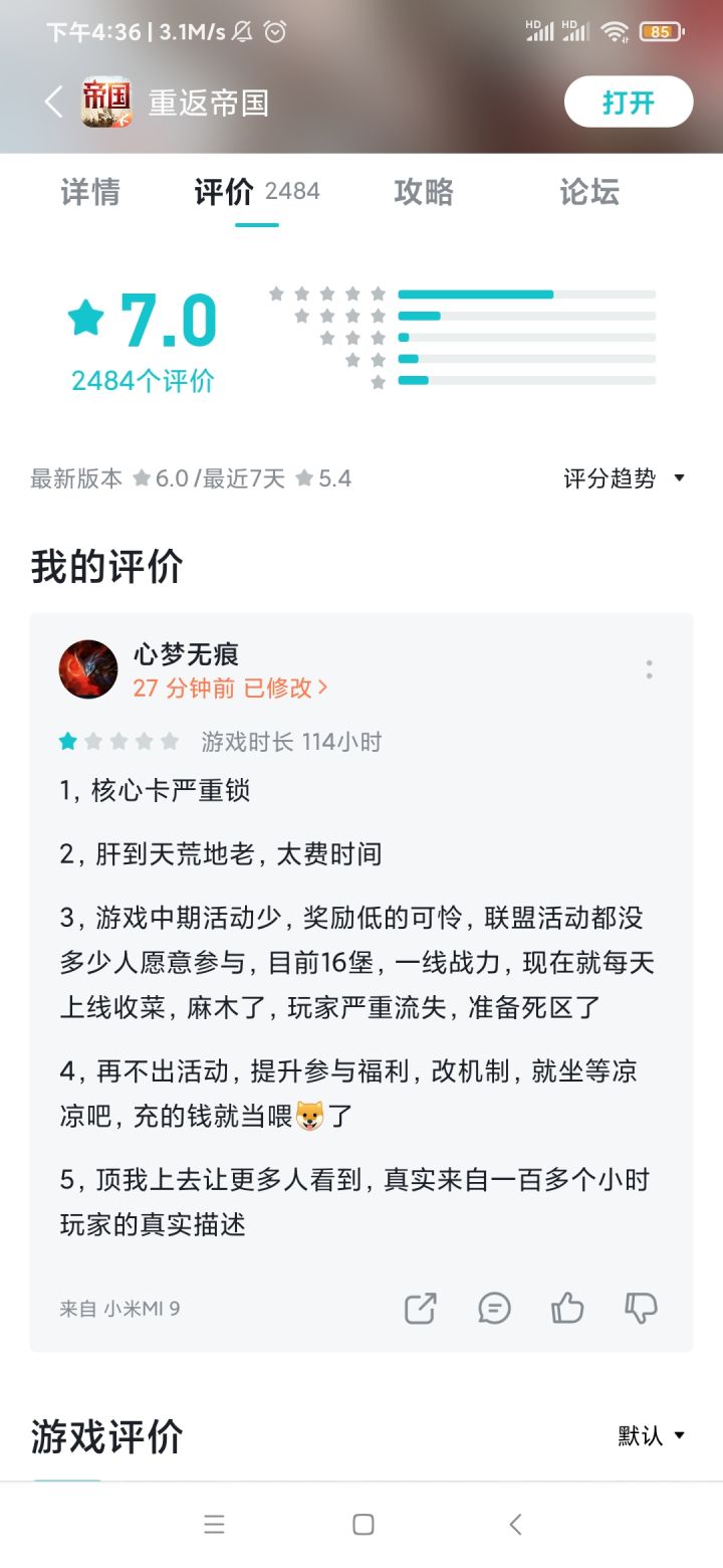 鉴于tap上面洗地最严重,看看应用商店评分,同类型游戏你最低,心里没点数?策划?
