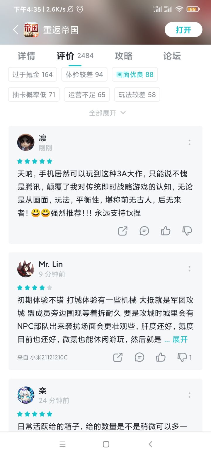 天美上线了重返帝国,感觉很不错的样子,写个日记吧