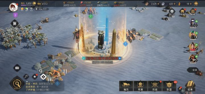 重返帝国微信3区史记058『破关第三天』君临之北九野联盟【谛释天】4月8日20时38分攻占【重甲庇佑圣碑】——这是拿下9级【铁心宫城】的第一步。 【皇朝L】兵临7级盛宴城,围城深挖壕沟,打造攻城器械,随时准备开火。君临之西内海洲一盟【云上恋】4月8日21时19分攻占7级【力量城】后,进度如飞,在【双子城】北部迂回运动,接近【重剑利刃圣碑】。君临之东东洲、金沙洲“8王之乱”,金沙洲【君天下】势头最劲兵力最盛,4月8日21时45分攻占【祭司城】,展望8级【龙骧城】。东洲4盟尚未攻下7级城市,【拘魂阁】4月8日13时08分拿下8级【狮牙城】北部的【重甲庇佑圣碑】。