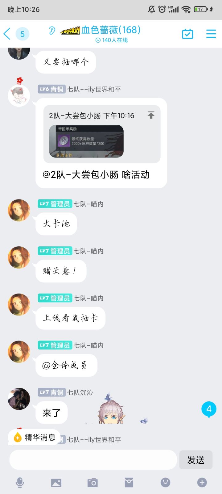 拥有高战最多的【HRG】因为过于招摇,遭到了【焱天使】、【青龙吟】和【大唐】的联合进攻,虽然将大多数进攻都防下,但也元气大伤被围殴的士气低迷。目前【焱天使】、【青龙吟】、【大唐】、【HRG】共享君临之东。