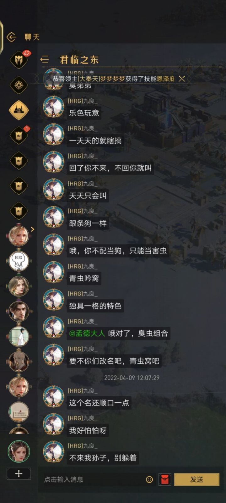 QQ四区:【君临之东全面开战】【jdk】和【hrg】全面开战在武斗的基础上还有文斗双方在世界频道上唇枪舌战战斗方面,hrg主动发起进攻,jdk处于被动状态,多人开罩进行保护