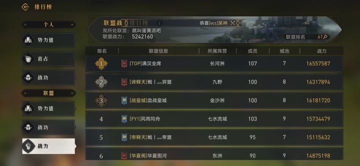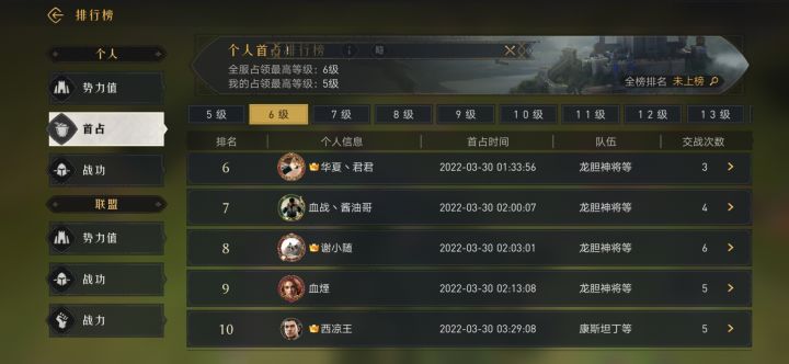 微信3区史记006『个人同盟战功榜』我还在奋力开荒5级地,而大佬们战功都过万了!