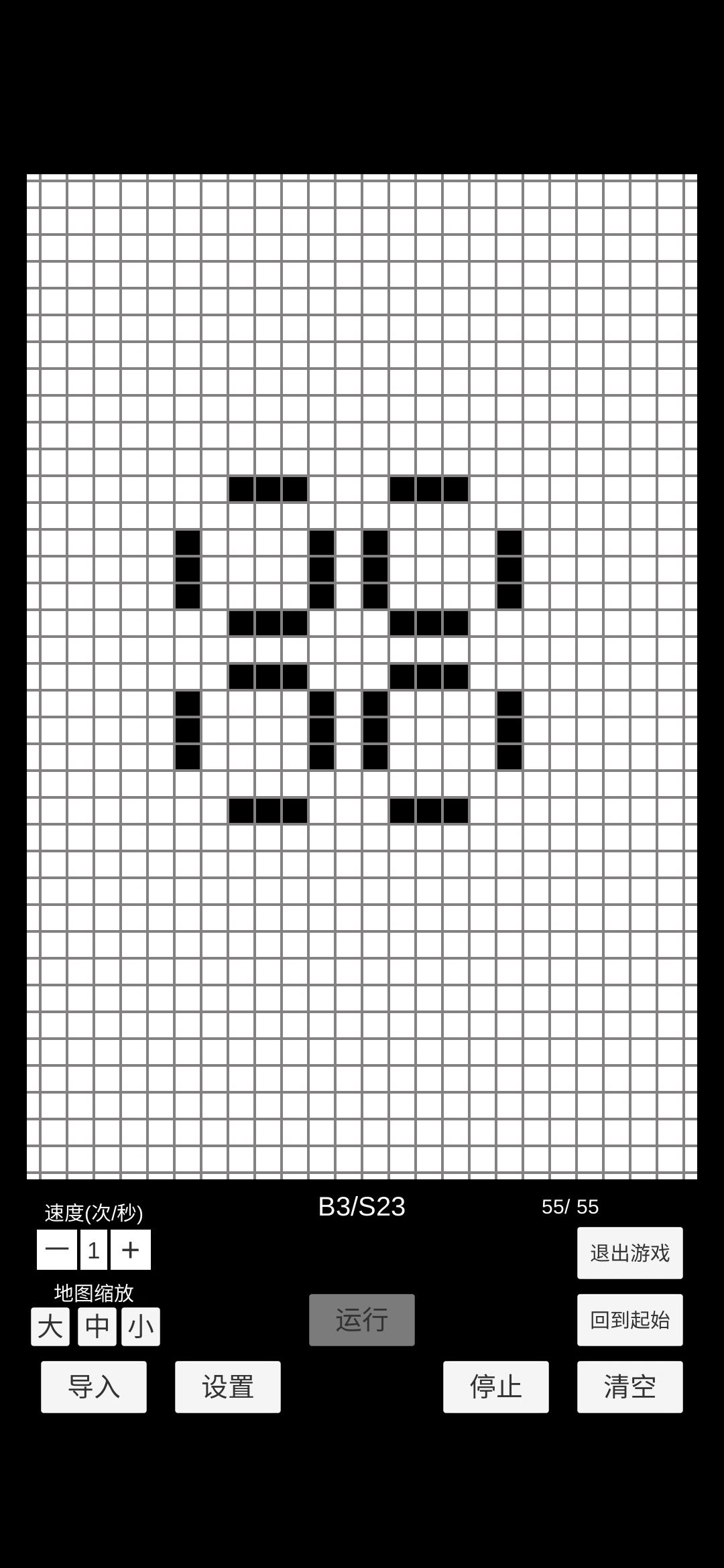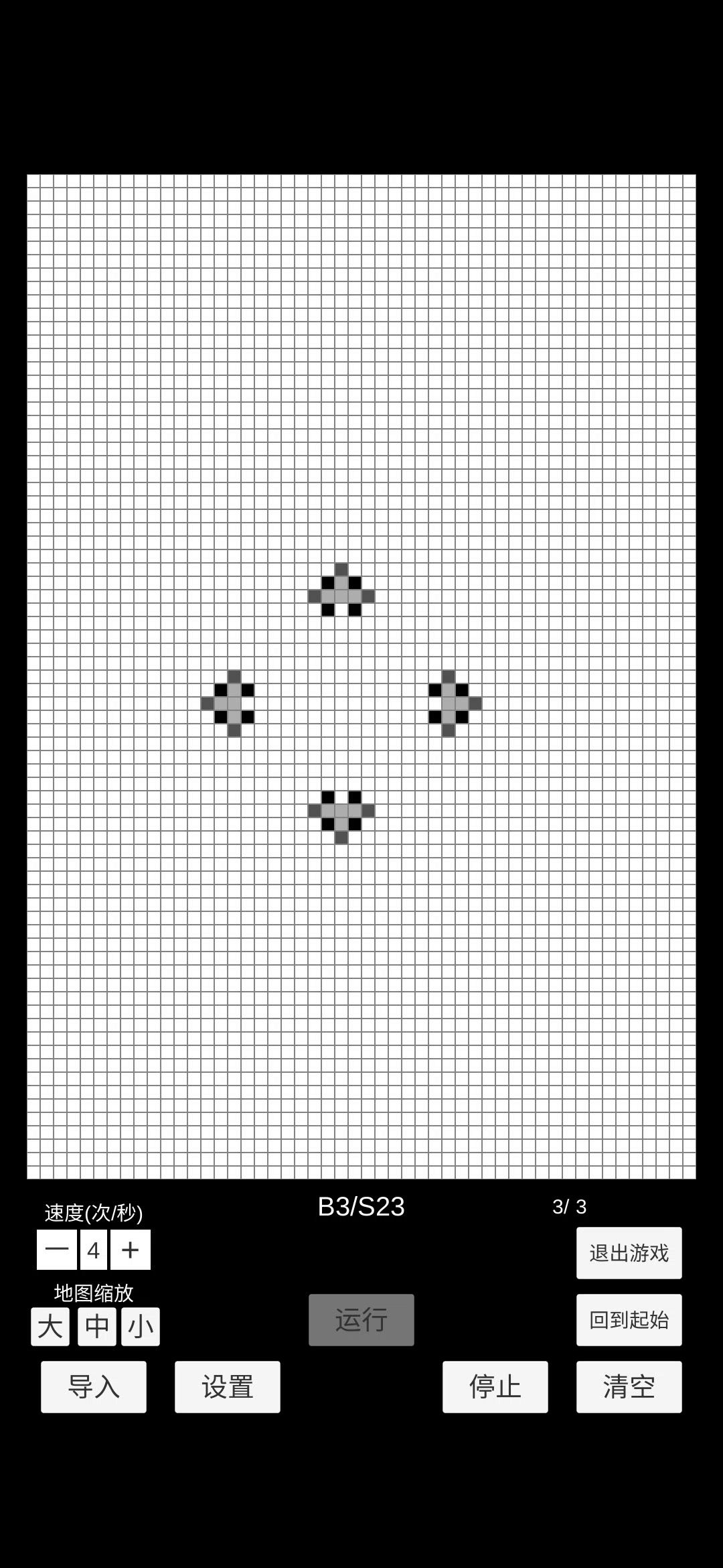规则矩形时会演化成锯齿正方形,不规则时会慢慢充满地图但留下四个角,神奇的是边缘像水波一样能传导波纹,复现要注意开局黑色格子不能太少。