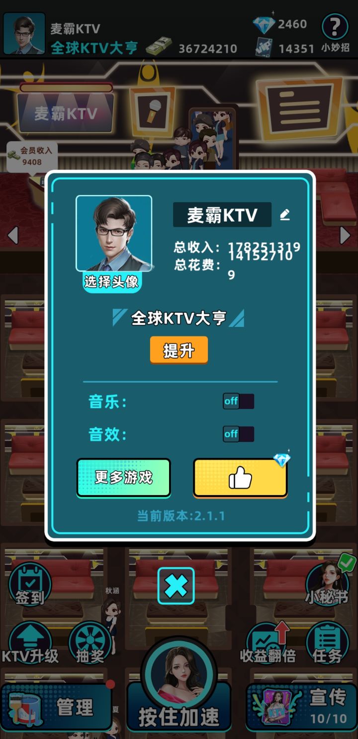 游戏已经升到头了!是不是应该加点别的什么了?或者换个城市开新店!或者开个酒吧什么的!主要是都升到头了没得玩了!