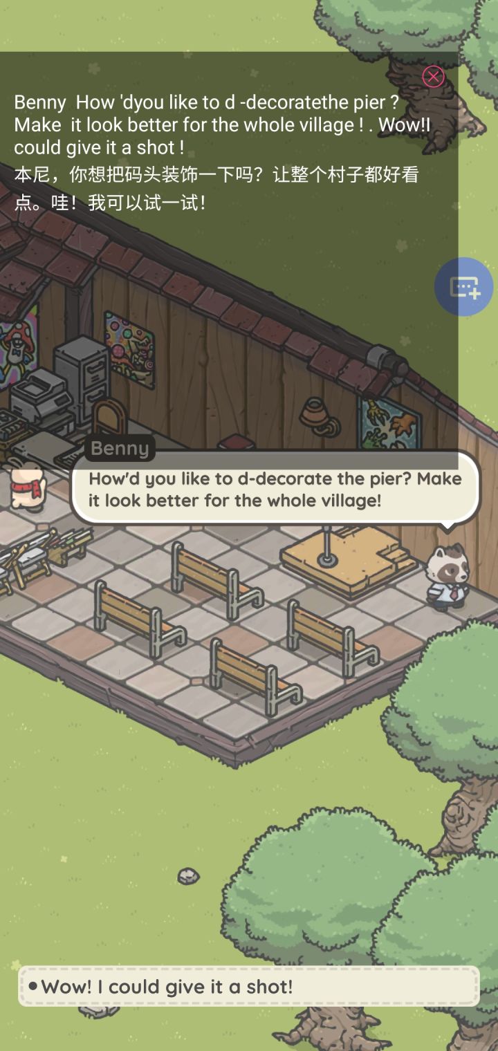 通过对话,可以装饰其他地方了,我现在只开了码头。目前看到有玩家能装饰琪琪家,但我没触发这对话,所以我猜会不会是因为好感度的关系