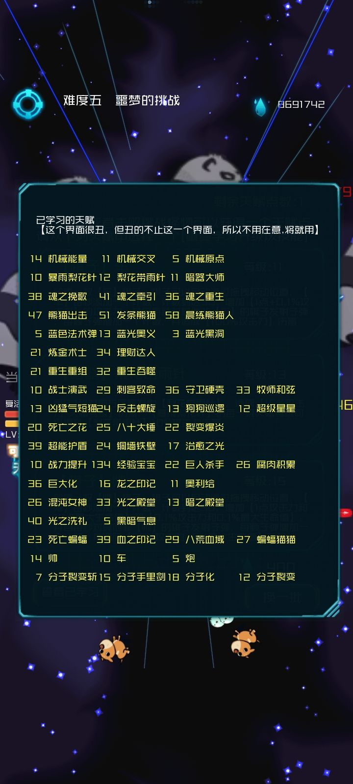 换了个打法,不知道怎么说,太乱了。天赋点太多,直接全选第一个。
