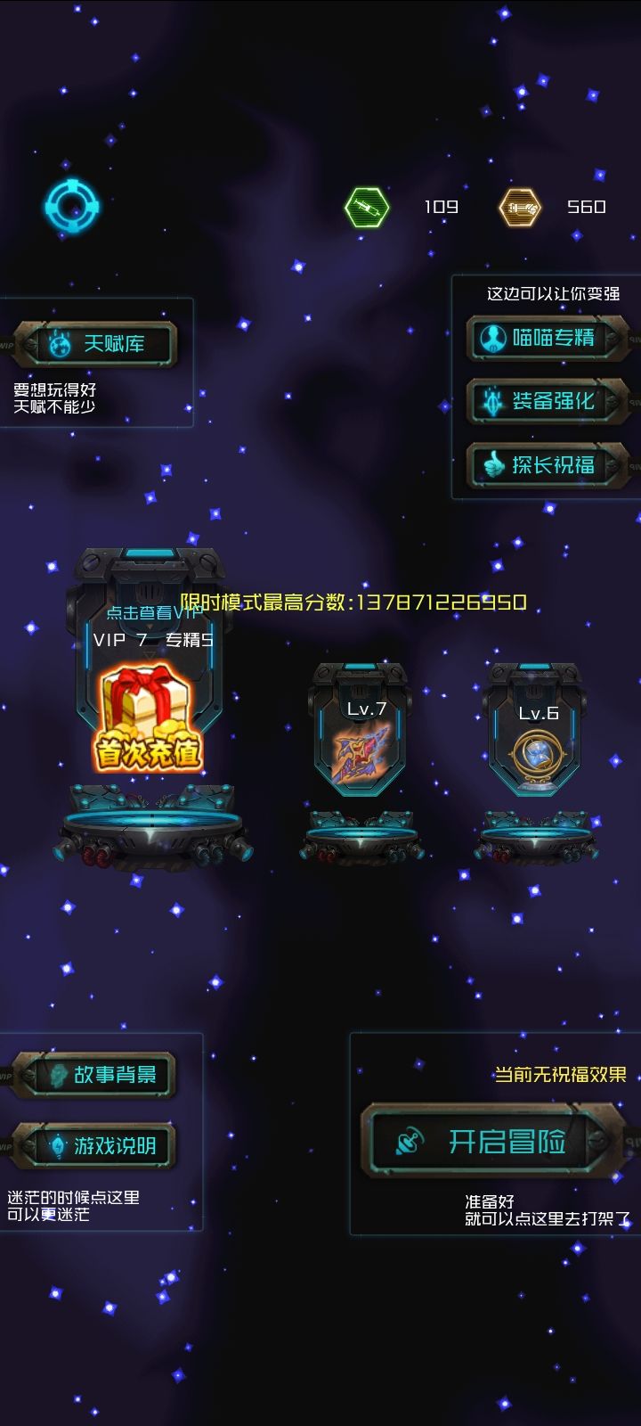 新手攻略,带下面这3个,技能点一个蓝光黑洞一个蓝光奥义,能量炮对着黑洞打,基本上能通过所有的普通关卡,就算到后面的这也是一套前期无敌的组合。