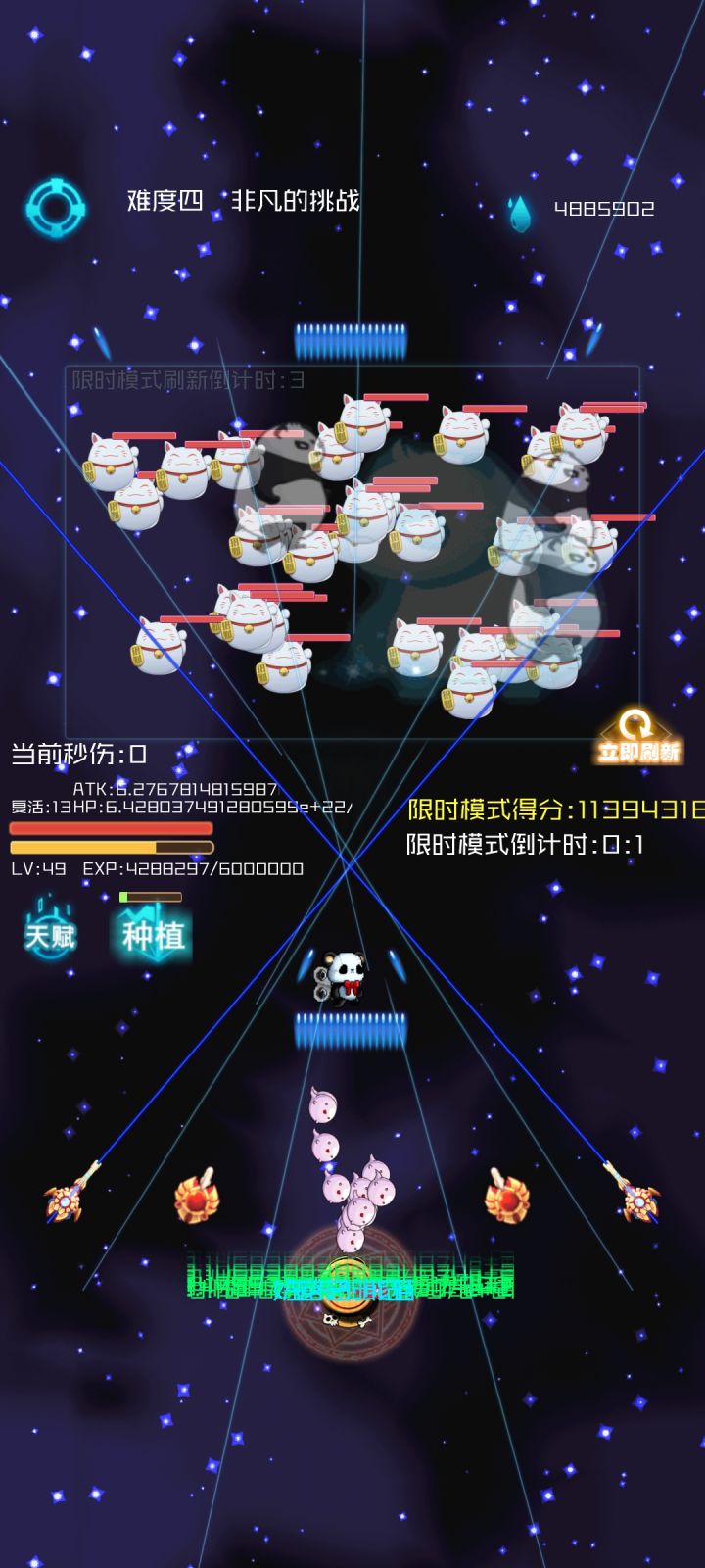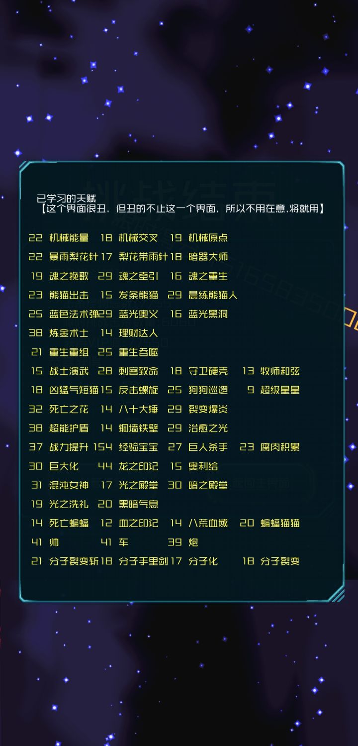 思路主要是通过炼金术士赚水晶然后用鬼推磨无限叠攻击力,然后攻击力高了守卫硬壳只需要一级怪就打你就无伤,然后治愈之光可以通过攻击力来无限叠血量。这样血和攻击都高了。随便搭配输出天赋都能随便秒,能量炮和海盗喵组合主要是用来渡过前期,我自己感觉这两个组合前期挺好用的。如果有其他的前期组合可以推荐下。