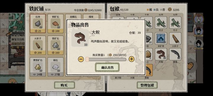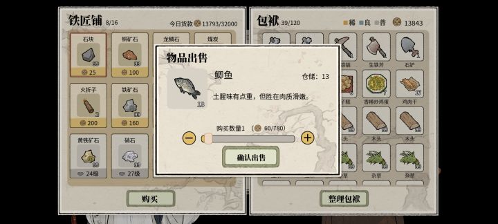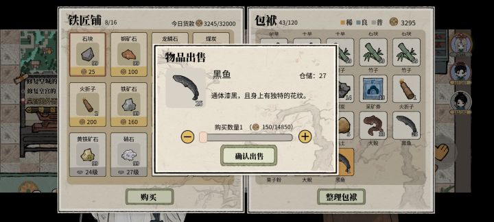 是这样的,昨天挖矿到26层之后稿子等级不够去不了下一层,但是看着自己一百多体力觉得有点可惜,于是掏出来鱼竿开始钓鱼,矿洞主产黑鱼和大鲵,掉了几个次之后没带鱼饵,最后兴致缺缺的出了矿洞,白天的时候拿着一些鱼去换铜,发现矿洞的鱼性价比超级高(放几张价格对比图)。哇,于是准备了50个鱼饵去26层钓鱼,很不错,因为钓鱼会有经验,人物升级之后体力又回满了,最后鱼饵用光了才出来的,最后换铜之后铜币也达到了1.