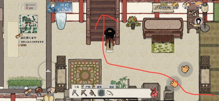 好像没找到教这个的,新人摸索真的很费时间,我的路线是图里这样的,上楼梯后随便哪个房间进去最里面和铜镜交互就行。有更快的捷径的话希望大家能在评论里说一下,感谢(策划你可真是聪明啊设计这么里面)重要更新:大家要记得点开团队里每个人的头像给队友授权一下钓鱼抓蟹(p6),不然队友去你家钓不了鱼就不能完成任务了,只能退出再重新换一家(很累)至于怎么看你能去哪