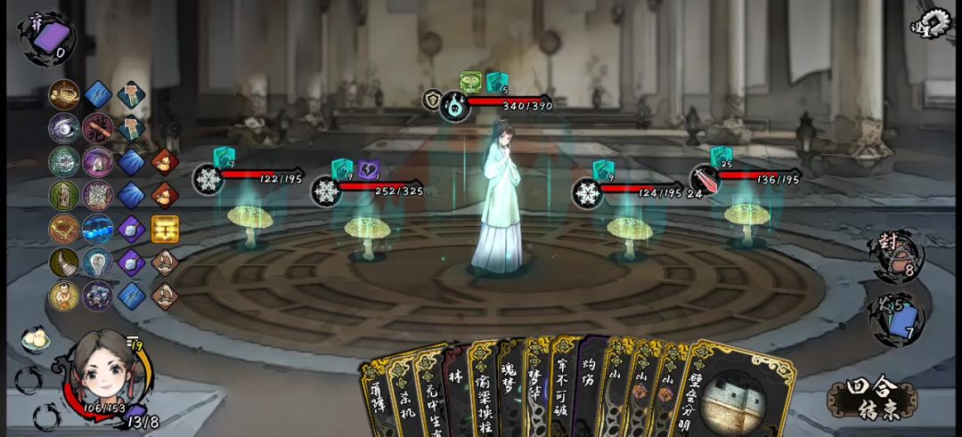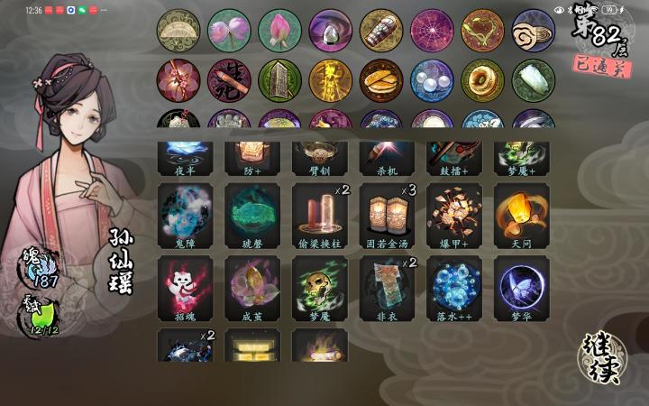 天问1张 招魂1张 夜半2张 灵躯1张 魂瓶(越多越好 主要输出)现灵1张(主要过牌 能升满最好)除了 魂瓶跟现灵 其他都可以不升。我这把运气不好 就遇到了几次删牌的,现灵也没有 所以才用锦囊替代出牌顺序: 先上魂瓶,四组合,现灵,夜半,四组合,现灵,夜半以此类推。护符优先:珍珠,蛛网,玻璃串珠,毒蘑菇,竹立牌(能保你前期遇到boss无伤)博茕(前期尽量先拿多摸牌的 牌成型了 再拿博茕)尽
