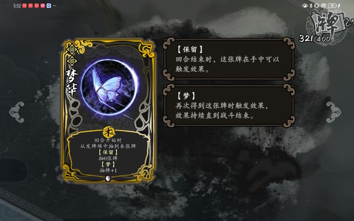 一、核心核心牌:偷梁换柱+琥磐饰品:朱笔+玉蝉+竹立牌二、原理棋牌流很好玩,加保留牌和梦牌,它每回合都能激活梦牌和保留牌的效果,然后弃牌使得朱笔、方天戟等产生攻击效果,贼快乐。三、注意1、卡牌不要太多,个人推荐两张偷梁换柱+14张手牌+若干装备牌,确保几乎每回合都能触发偷梁换柱效果。2、偷梁换柱外14张牌推荐梦牌和保留牌,也可固若金汤,包甲提强度。四、玩法前期有偷梁换柱,用偷梁换