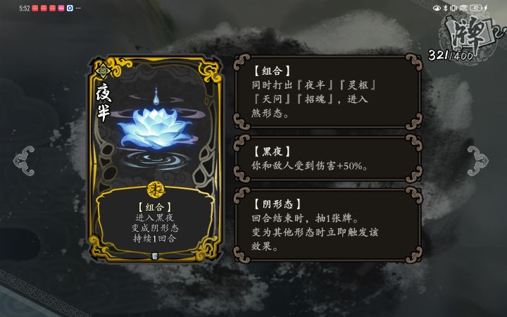 核心一个四张,循环过牌:夜半,天问,梦华,伤害:魂瓶打法核心:魂瓶打伤害,夜半先出,然后出天问激活夜半效果抽牌,抽上夜半,再打出,激活天问效果,梦华保留效果抽牌(梦华需要打出一次),抽上天问,如此循环,魂瓶伤害越来越高,最快一回合杀具体操作开局选牌的时候找魂瓶,2次选牌有一次魂瓶就能开了,其他除了夜半和梦华都不要。然后打法就是魂瓶激活后配合夜半,天问打伤害。之后开始删牌,把单张先删,多张