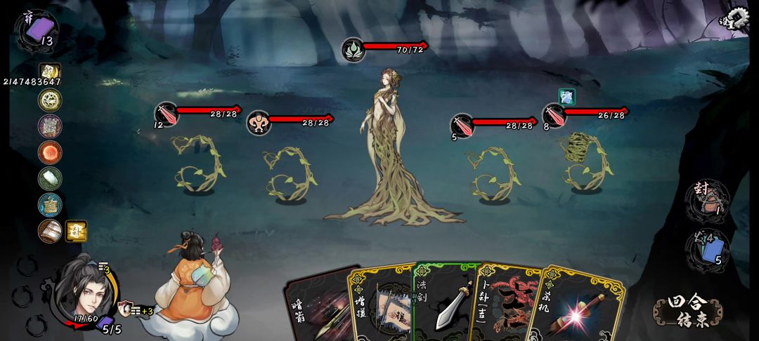 1、点穴尺怎么还能复制防,防好像不是组合牌。2、经常卡牌二选一时点到BOSS详情界面,不知道是点多了还是bug。3、是否考虑在卡牌效果弹出的选牌界面增加隐藏按钮,有时需要再看一下自己手牌和对手情况再决定选啥。4、结束回合时有时没注意牌多了需要弃牌,是否可以增加取消按钮重新返回。类似还有一些技能牌打出后需要选牌是否也可以取消不出这张牌。