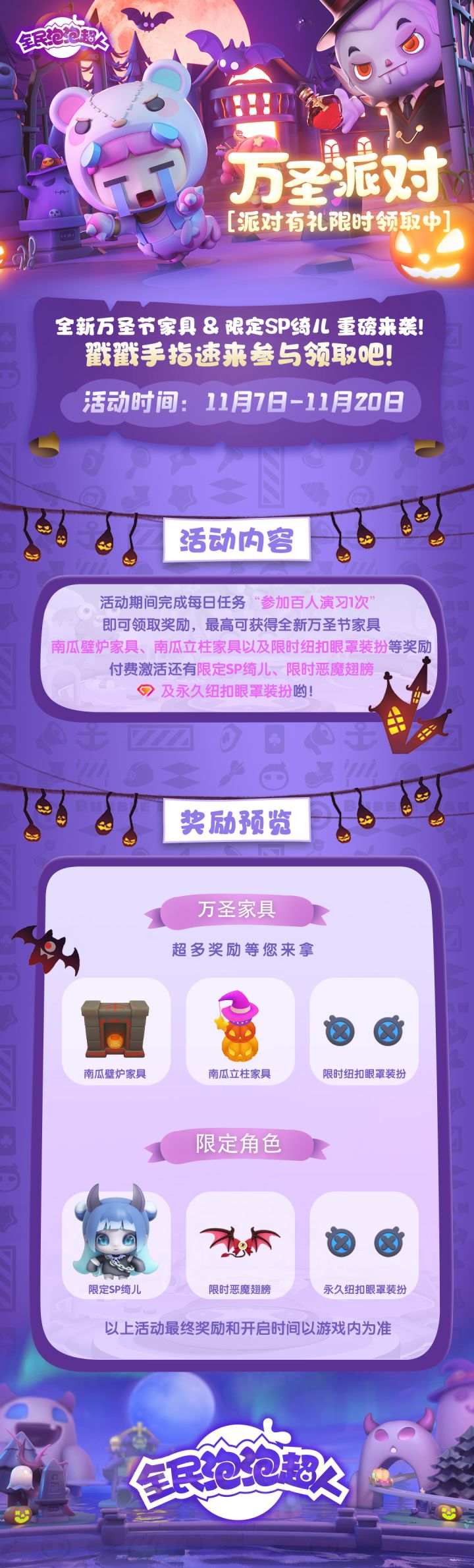 各位超人!全新万圣节家具&限定SP绮儿即将闪亮登场!请锁定11月7日派对有礼有惊喜!