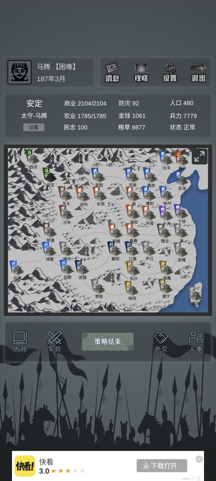 2.防灾度每一回合都掉,后期城池多了每个回合都需要治理太累