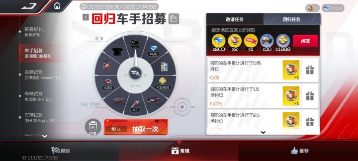 【获奖名单】恭喜以上幸运玩家中奖!辛苦各位玩家在七个工作日内添加联系方式QQ:565469107,添加时需要备注【TapTap+游戏名+活动简称】兑换奖品哦~(7个工作日内没有联系工作人员视为放弃奖励)=============================================24S5盛夏车手季开启,宠爱一个夏天!典藏好车相送、相伴夜游榛名山,更有666福利免费送!全球限量21