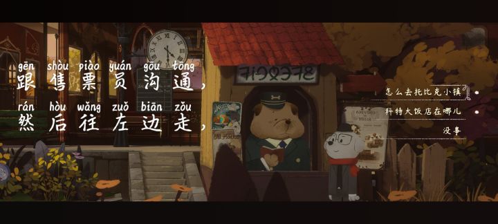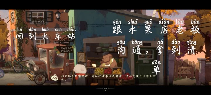 #落日山丘 #发现好游戏 前段攻略[表情_加油] 实在不会再看 不然影响游戏体验🤓☝ 比较详细[表情_微笑] 1.先去火车售票员那问话[可问全]→第一个问题他会告诉你去的办法❗️ 2.向右走 3.可以看见水果店老板→帮他把那个单子的内容看清 4.拿到单子 去水果店老板的信箱 可得知水果店老板的名字[米歇尔]❗️ 5.回到火车售票员那里 站他面前 左边贴有广告 看广告 得知[面包店 电话号码]❗️