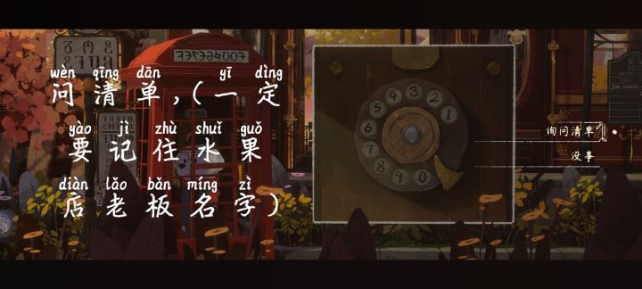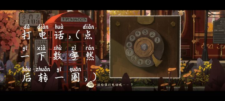 #落日山丘 拿到清单后,回到车站—右边的房子那里,点击左边的海报往下滑,看见4位数的电话号码,然后去电话亭里面拨这个号码,老板叫米歇尔。 打电话的教程在30秒,先点击数字,然后再往下滑滑到指针那里。