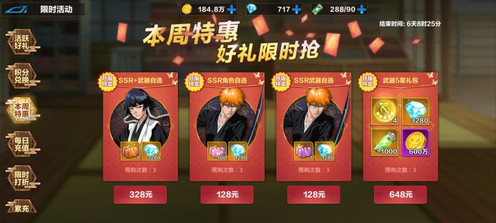咱们游戏资源还是比较紧张的,尤其前7天,这篇攻略讲下开服养什么阵容最优。先上结论,对于0氪或者小R核心:一护,露琪亚,碎蜂其他:松本乱菊,泊村左阵,市丸银首先明确一点,其实大家玩个7天其实是可以强行6人全金卡的,但为什么我不推荐全都只养金卡呢,很简单——根本养不起。金卡卡牌碎片难以获得,升星困难;金卡的武器升星的灵珠掉落几率更低;就连升品,金卡要求的灵能也更多。养紫卡还可以把一些SSR品质