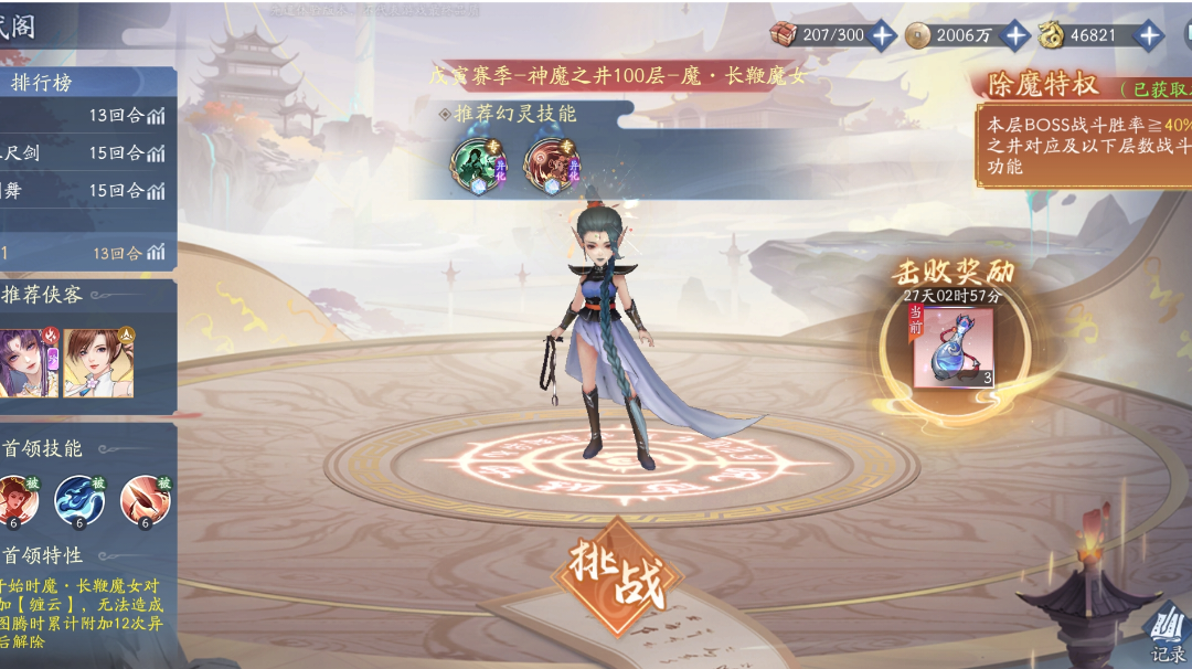 目前的阵容求神魔之井攻略