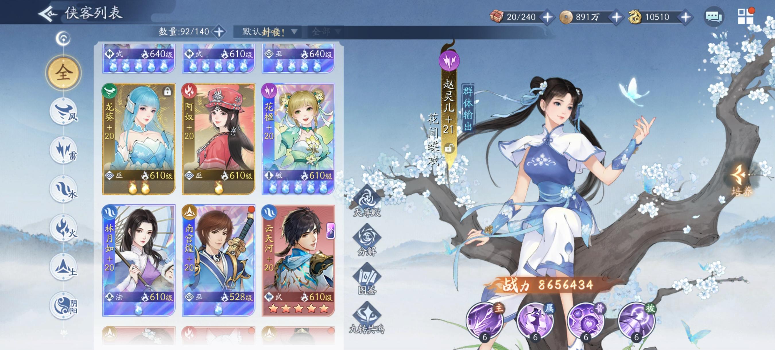 大家好,今天给大家讲一讲侠客阵容的推荐,以及侠客强度心得说到阵容,目前最强的应该就是以阴阳卡为核心,配备雷逍遥,灵儿,风月入的风雷队阴阳飞蓬,重楼,灵儿,不用多说,都是这游戏T0的存在,虽然前期获取不易,但是后期都得换阴阳卡,阴阳卡第一个要换的就是阴阳灵儿,阴阳灵儿是一个群体控制,群体回怒的神卡。他的止戈可以让敌方跳过当前回合,硬控一次,神盈可以让队友每回合都释放怒气技能,目前最强辅助没有