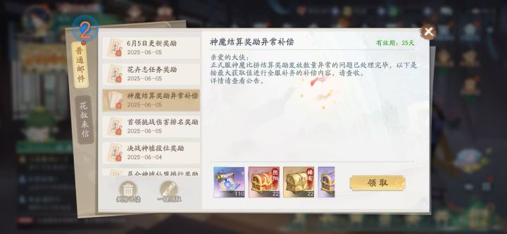一图的来信是周年庆福利二图是神魔结算bug补偿 福利是游戏在没有出现问题的情况下,(主动)为玩家提供的奖励,是对玩家的一种回馈和激励。而补偿礼包是因为游戏出现了bug,对玩家造成了影响,官方为了弥补玩家的损失或安抚玩家情绪而发放的,是一种(被动)的行为
