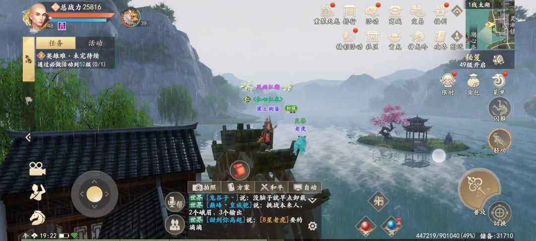 风景的风格还是比较还原几年前的端游的。且有自己的创新,作为情怀玩家可以接受。 轻功系统。除了闲的没事干遛弯,其他没有用的到的轻功地方,毕竟所有的任务都可以自动寻路。就算是闲逛,去某个地方地图上点一下就能到了,这时候使用轻功容易失去方向,找不到路了还得重新去地图上点。 技能。几乎每个门派的技能都没有几年前的端游更花里胡哨,所有副本自动战斗,组个队挂机就好了,不需要套路,不需要再去研究技能的作用和释放