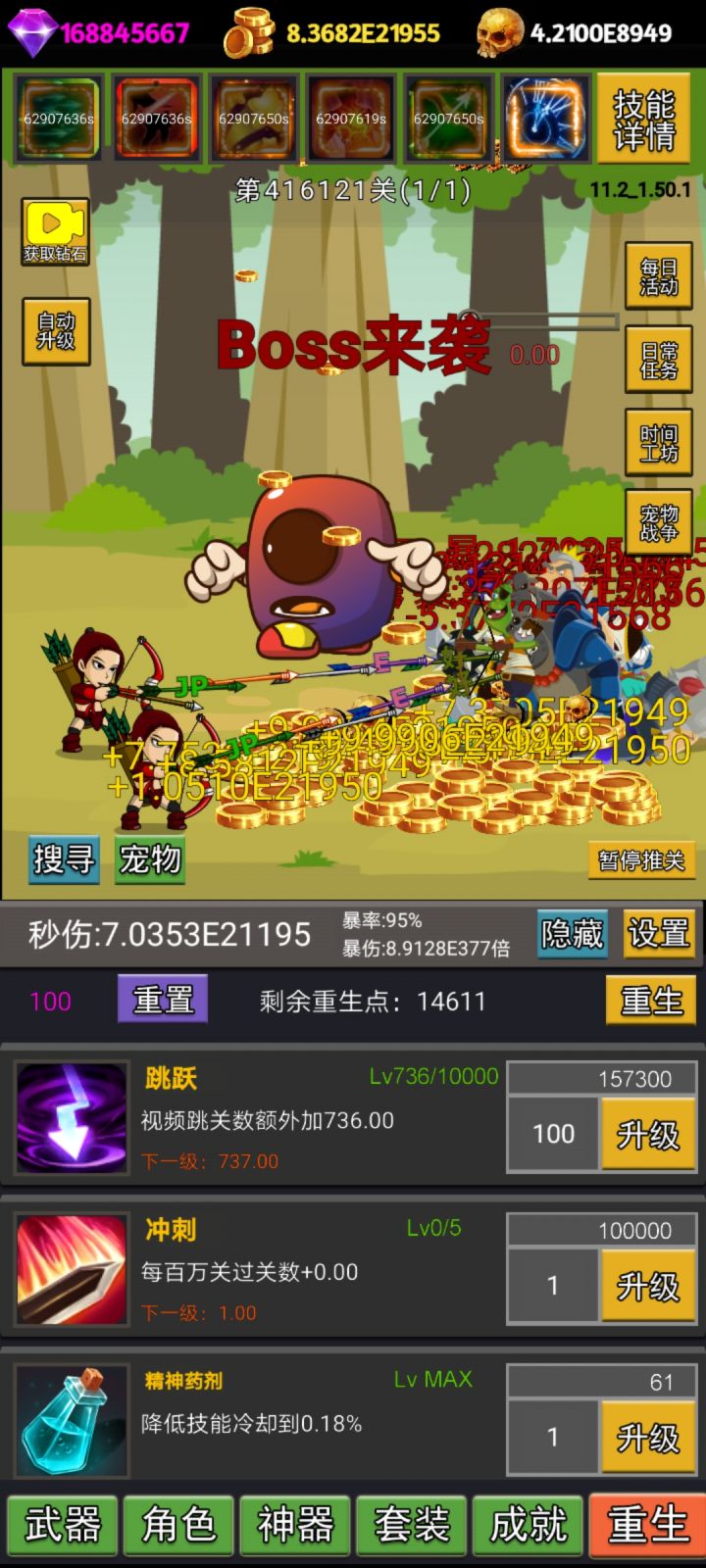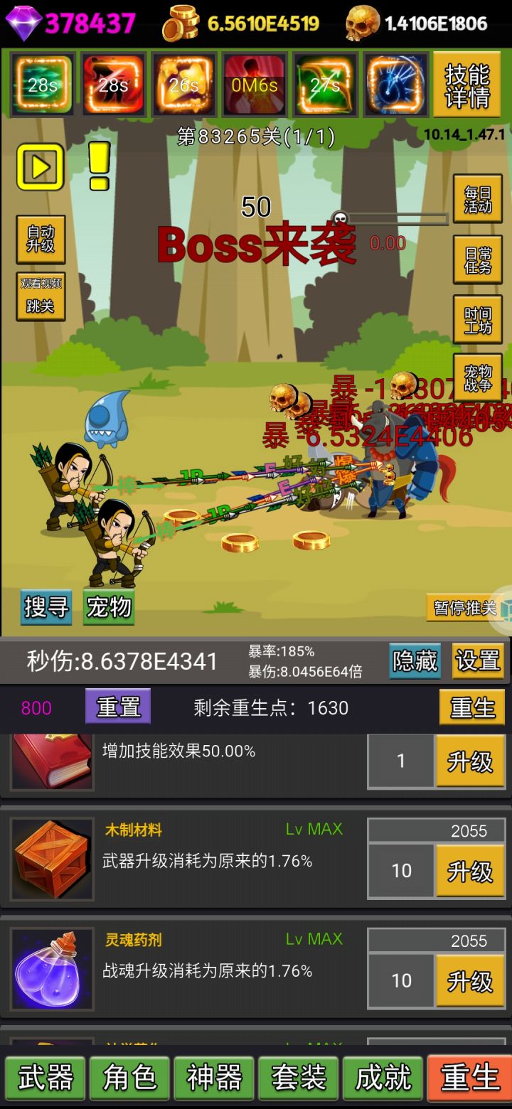 现在开始就是无限循环重生强化了。。啥东西都满了。。就只能提升重生上火了吧。养老开始。