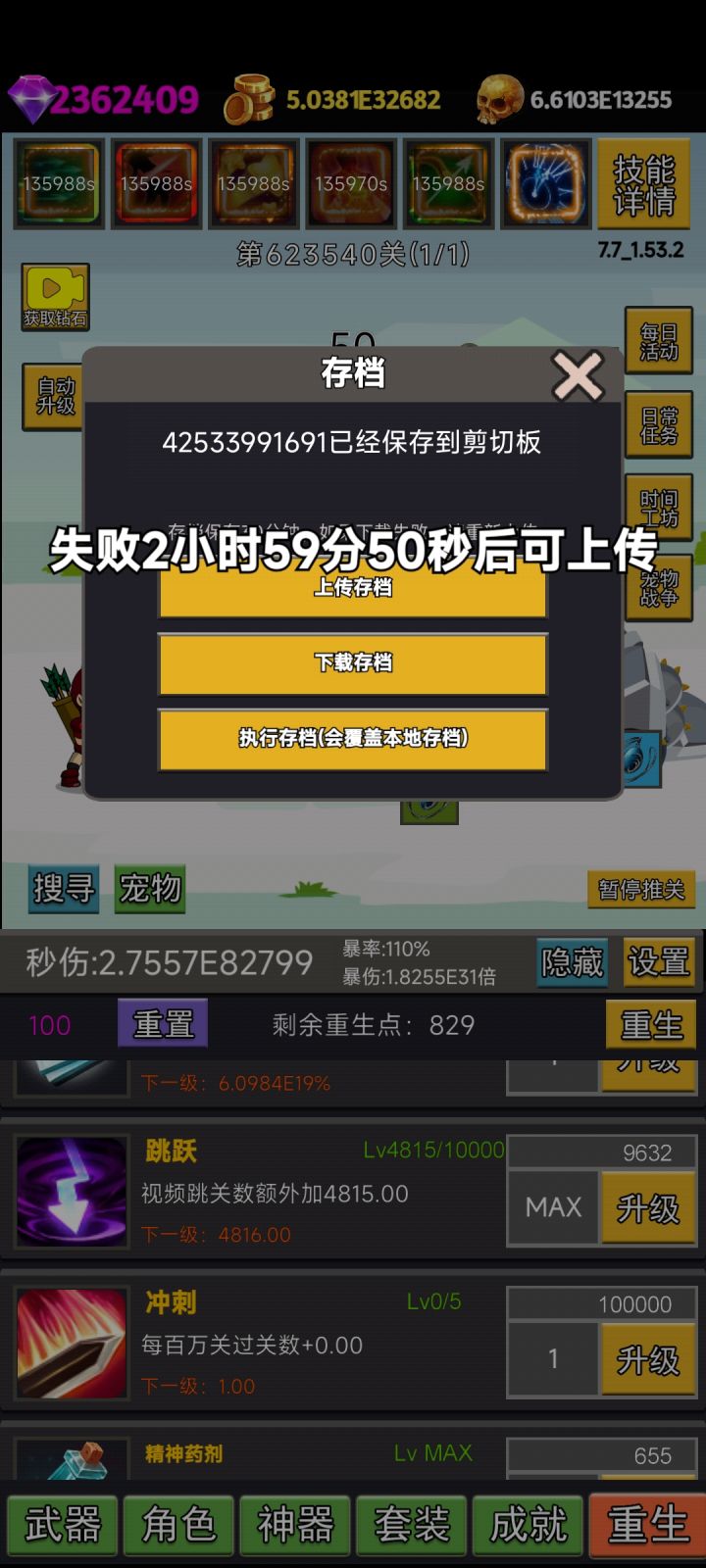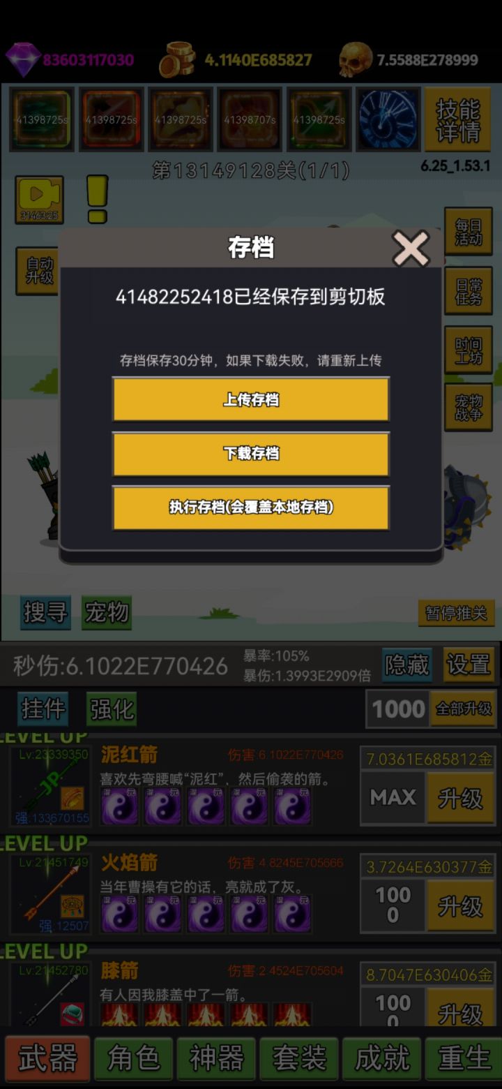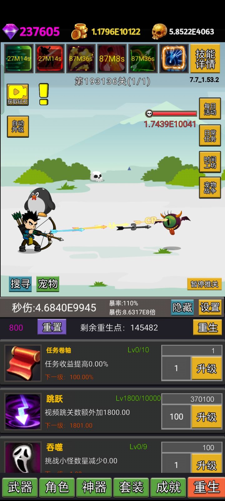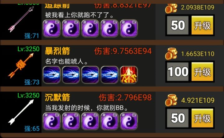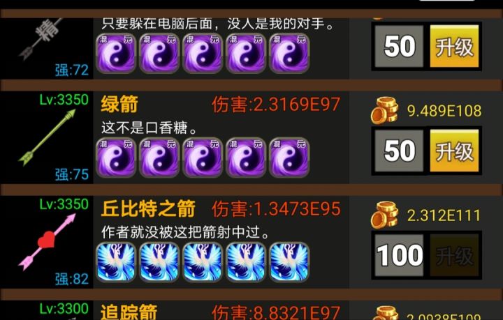 武器技能选择也有限,普通的最多250%伤害,特殊的有20%暴击等等,凑足100暴击,当然有自动点击器的可以升满,那个加暴击率,具体多少不清楚!