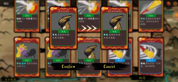 观音会送稀有3选1尽量拿消耗牌加闪避的那张稀有,千变万化火焰斩, 路上拿两个云霄或者攻击抽卡, 洗牌加能量宝物必拿 队友就是我后面的那光头必拿,队友卡一张是零费获取两能量,另外一张是零费。指定任意一张卡战斗内去除两点费用我云霄就是这样零费 消耗品赤焰符必拿。天兵符第二优先