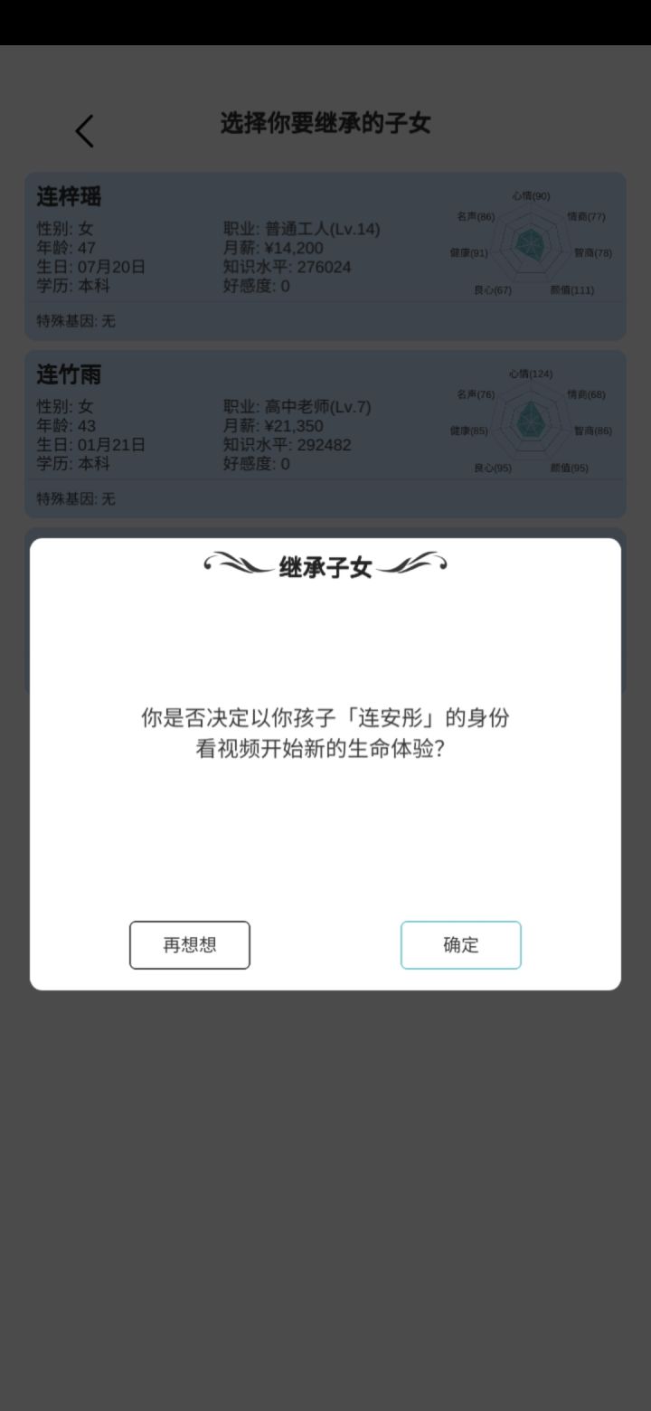 总体来说还不错,就是随机事件太少了,爸爸妈妈吵架,姐姐抢零食,笑话小混混抢钱,没了。好像不管你选项之后的结果是固定的,但凡我劝爸爸妈妈不要吵,他们必定不吵,其实个人觉得结果也可以随机的嘛。