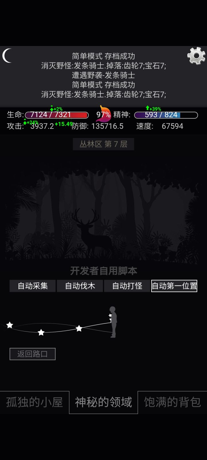 我通关了xdm,攻击力提到100后一直在矿场第一层挂机刷怪就好了,打怪加攻击力很多的,比吃果子还多