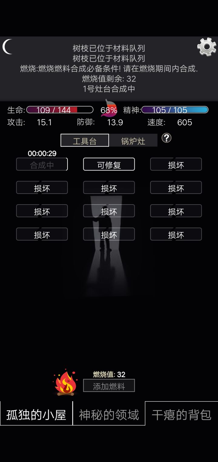 烧东西的时候换到探索就卡了,一动不动
