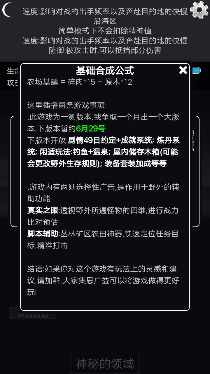 玩了三四天就提两点建议1,后期可以出一个逃跑的选项前期偷野活着不容易,2出一个商人系统或者商店选项可以换东西比如我树枝树叶用不了但种子不够用,。现在就这样