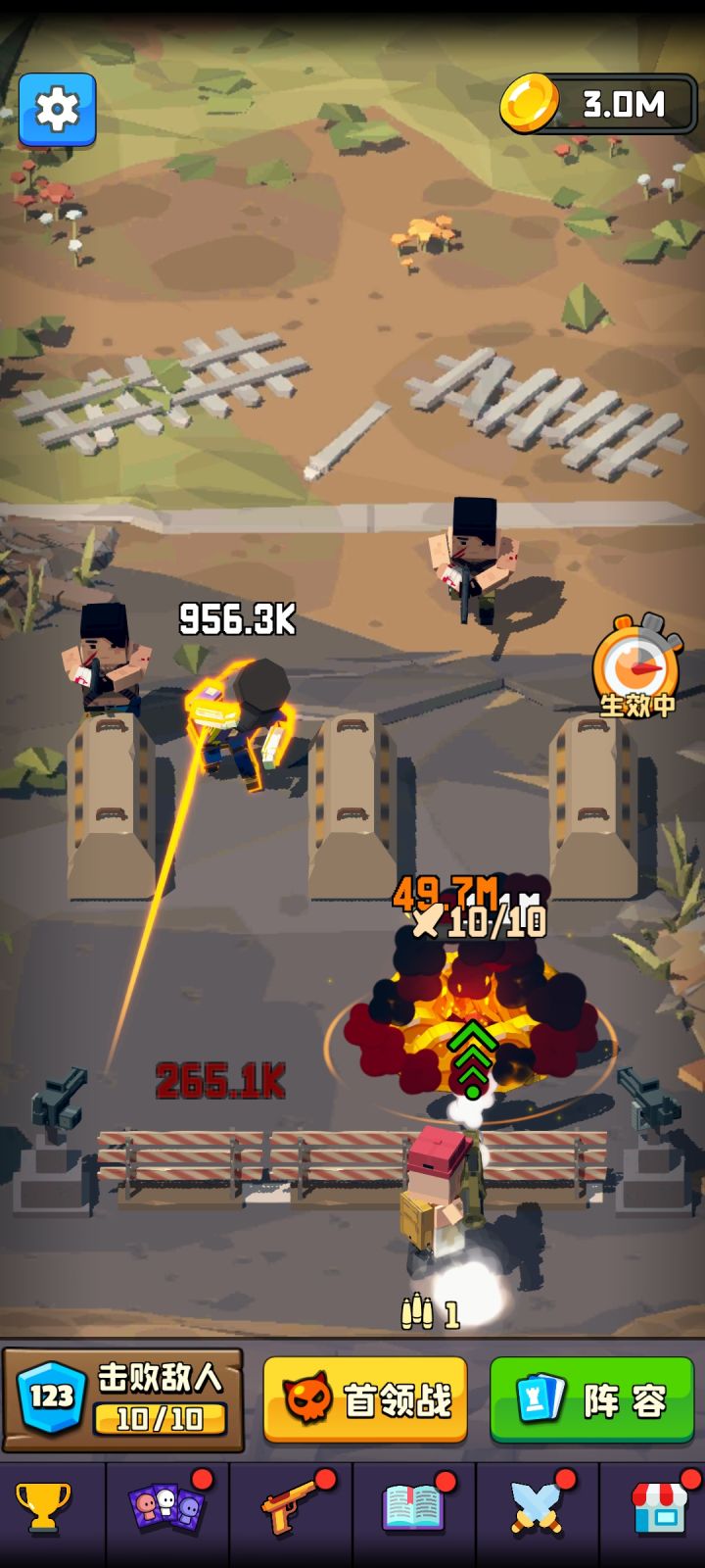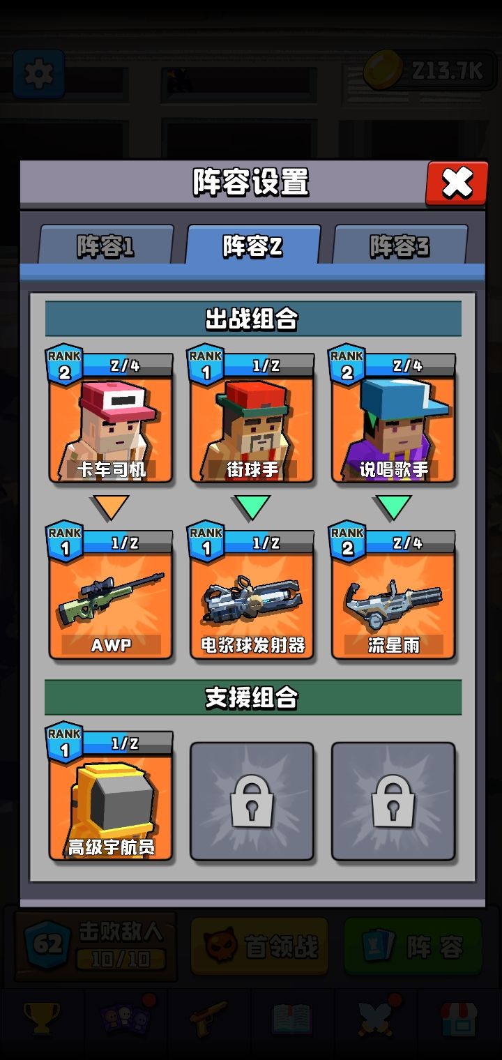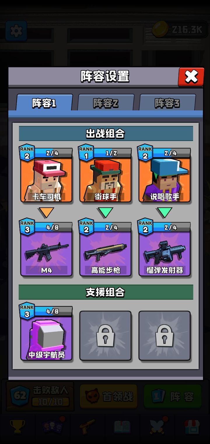 这关难度在于有3小关,第二关和第三关小怪输出快,伤害高,而最后的三个boss血太多,所以这里放弃增加弹药改为增伤人物,再利用m10增加输出过关。下面是演示视频。