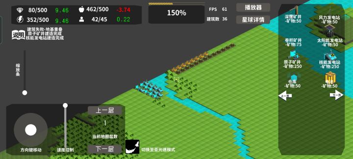玩了不到二十分钟大概,游戏可玩性高,需要考虑的就是电力与矿产以及人口工作效率的平衡性,把握了这点之后后面问题就不大了,喂一一点就是能不能整个建筑拆除的功能,其他方面的话暂时还没有遇到,当然如果画风能更科幻一点就好了,再有点随机事件来考验玩家的应变能力我感觉可能会更好