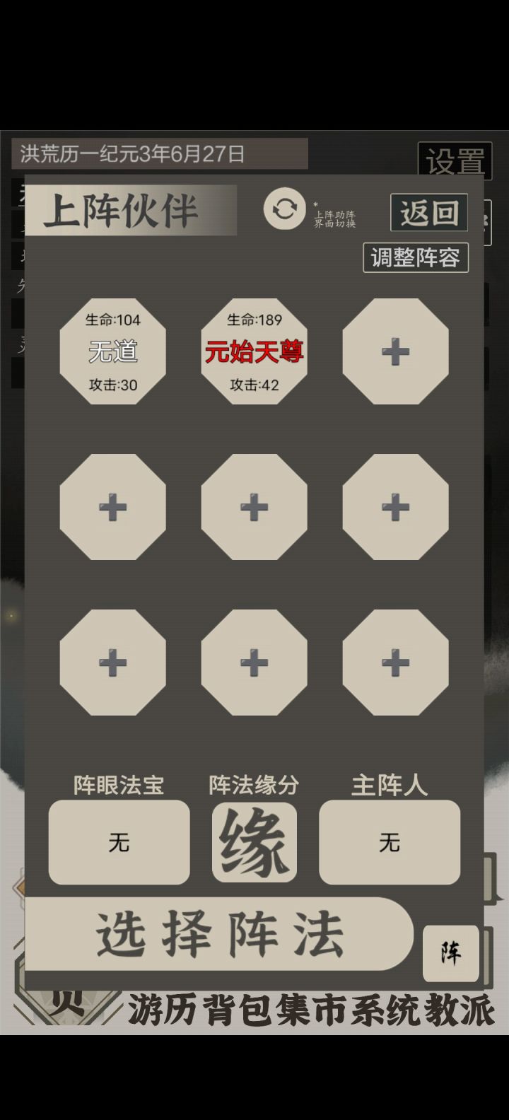 5,伙伴选择,伙伴前期建议 2奶1群2辅助1单体1通天。主C通天。群体可以用东皇。辅助镇元子,孔宣,云霄,元始天尊。单体孙悟空。奶妈后土羲,后土,神农,西王母。