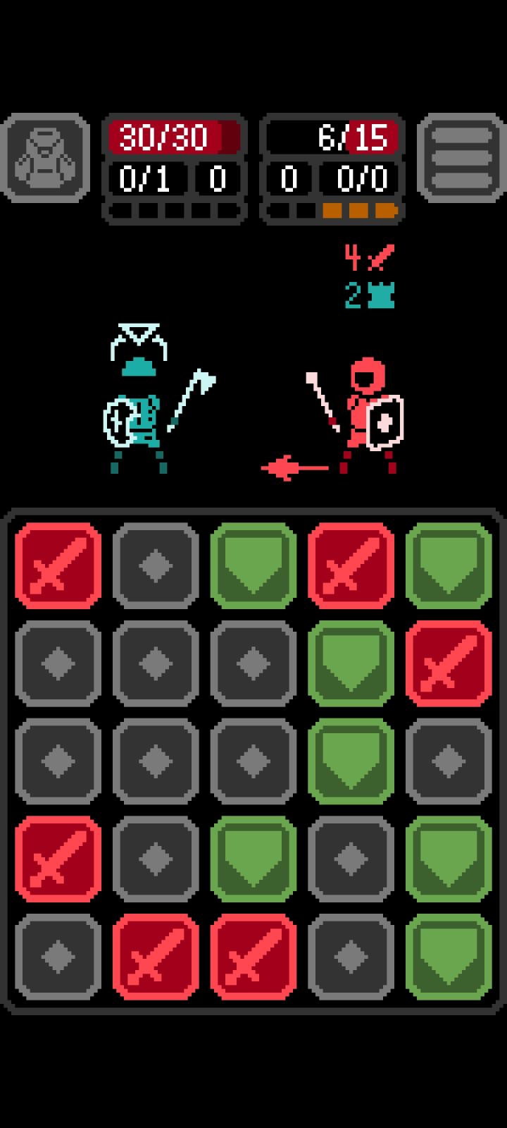 游戏名极夜kaamos,最近出了移动端(没有中文)因为这个复古画面还是挺吸引我的就试一试了。简单说这就是和滑块肉鸽,你每次只能滑动一行让方块连结至少三个以上才能进行行动。而方块数量由你身上的装备决定,这时候你肯定移动觉得攻击方块越多越好……但问题就在于作者居然给装备设了攻击伤害上限和攻击次数上限(经常时候你换了把可以打两次的剑却凑不齐能让打出2次攻击的最基本滑块……),就算你滑块再多也不能突破武